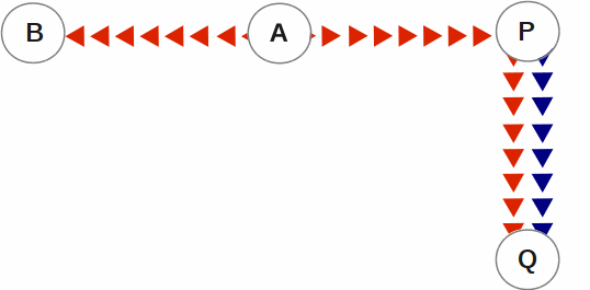 With SI replication, an instance has the ability to receive replication stream from another instance and at the same time execute its own business logic to compute and commit its own updates. In the following B←A→P→Q replication configuration, instance P can execute its own business logic to compute and commit its updates to its own replicated regions while receiving a replication stream from A. A is an originating primary instance, P is a supplementary originating instance, B is a secondary (standby) instance for A and Q is a secondary (standby) supplementary instance for P. In this configuration, B and Q are only permitted to receive and apply replication streams from their respective originating instances. Unlike P, B and Q cannot generate their own updates.